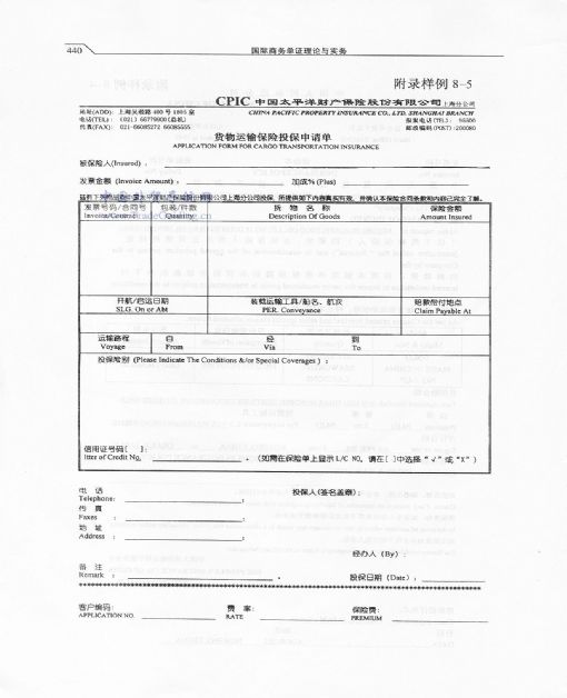 货物运输保险投保申请单